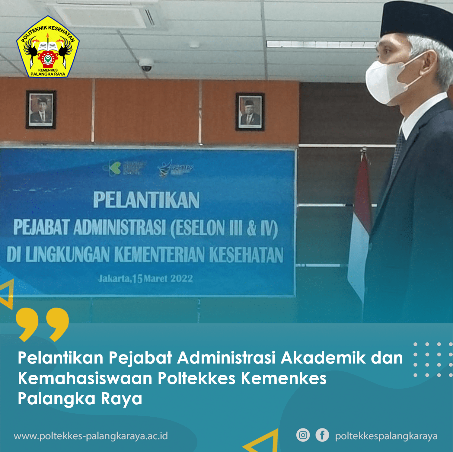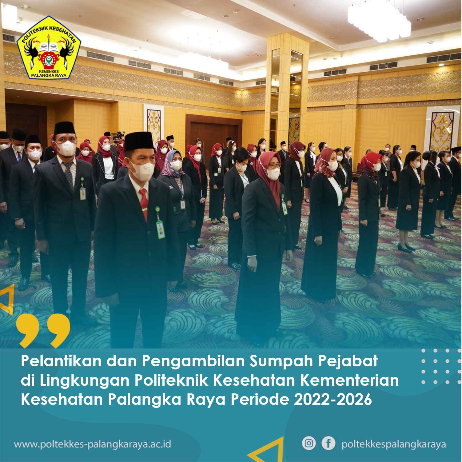 Kamis, 17 Maret 2022 bertempat di Palace Ballroom Hotel Aquarius Palangka Raya, Poltekkkes Palangka Raya telah melaksanakan Pelantikan dan Pengambilan Sumpah Jabatan Periode 2022-2026. Pelantikan dan pengambilan sumpah jabatan yang dilaksanakan bertujuan untuk melakukan rotasi …