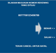 - Masukkan Nomor BRI Virtual Account (Contoh: 26215xxxxxxxxxxxx), lalu tekan “Benar”