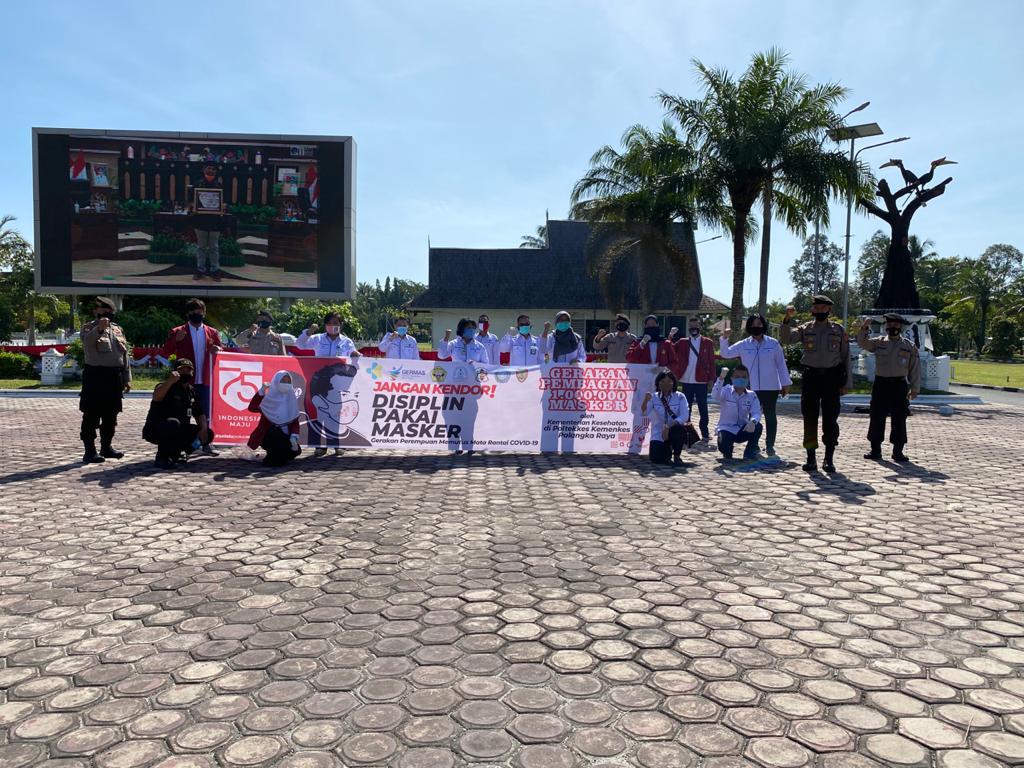 Tepat pada Minggu, 30 Agustus 2020, Poltekkes Kemenkes Palangka Raya sebagai UPT Kemenkes mendapat tugas untuk membagikan 23.000 masker dan memberikan edukasi penggunaan masker. Kegiatan dapat terselenggara berkat Kerjasama Poltekkes Kemenkes Palangka Raya (Tim Satgas Covid 19, Tim Center of Excellent, dan Badan Eksekutif Mahasiswa), Pemerintah Daerah Provinsi Kalimantan Tengah, serta 12 organisasi wanita, yaitu TP PKK Provinsi Kalimantan Tengah, Dharma Wanita Persatuan (DPW) Provinsi Kalimantan Tengah, Wanita Katolik Republik Indonesia (WKRI) Provinsi Kalimantan Tengah, Organisasi Muslimat Nahdlatul Ulama Provinsi Kalimantan Tengah, Persatuan Wanita Kristen Indonesia (PKWI) Provinsi Kalimantan Tengah, Organisasi Aisah Provinsi Kalimantan Tengah, Dharma Pertiwi Cabang Kota Palangka Raya, Bhayangkari Pengurus Daerah Provinsi Kalimantan Tengah, Wanita Hindu Dharma Indonesia (WHDI) Provinsi Kalimantan Tengah, Badan Kerja Sama Organisasi Wanita (BKOW) Provinsi Kalimantan Tengah, Persit Kartika Chandra Kalimantan Tengah, serta Himpunan PAUD Provinsi Kalimantan Tengah.