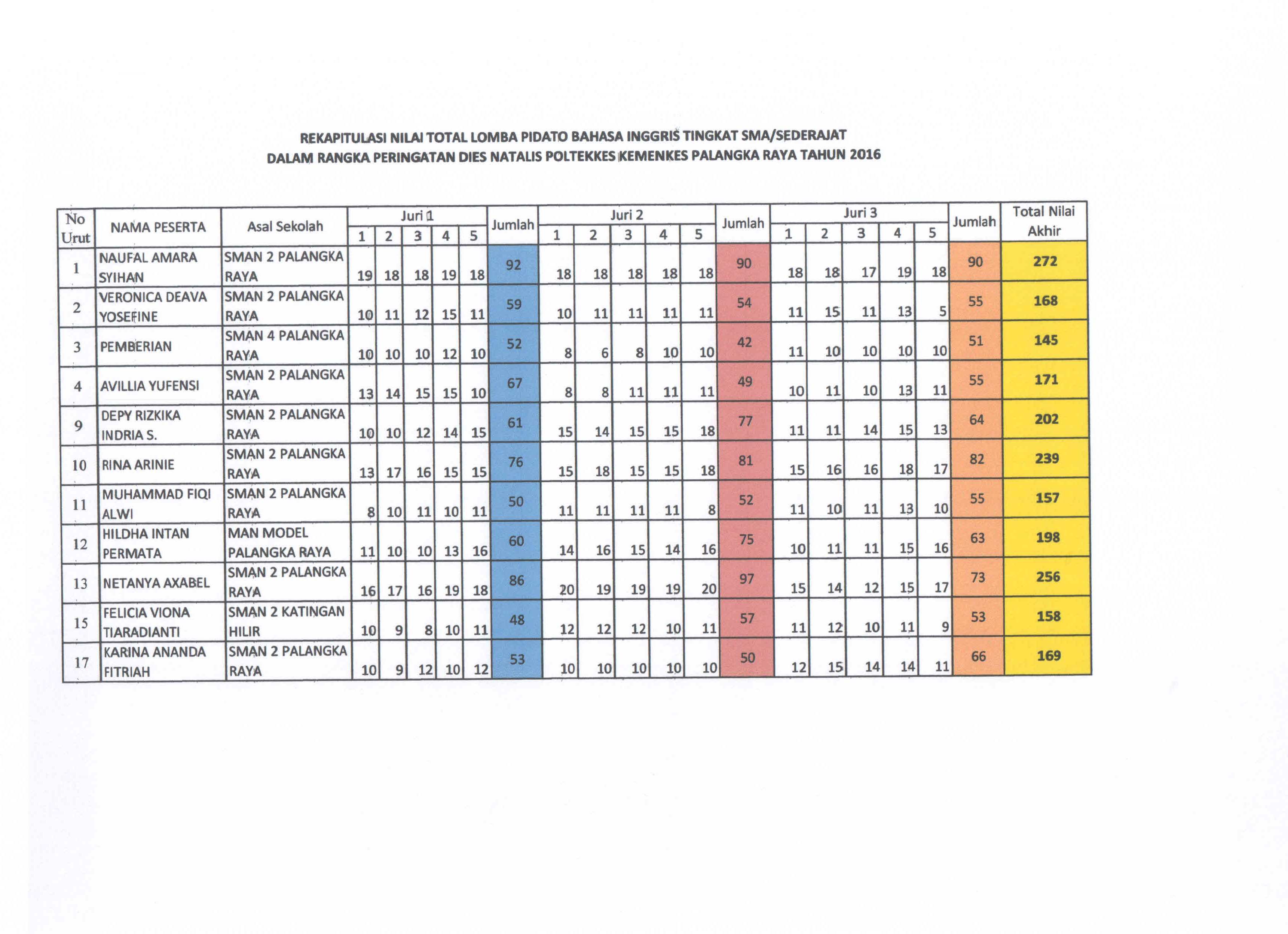 Pengumuman Hasil Peringkat Lomba Pidato Bahasa Inggris