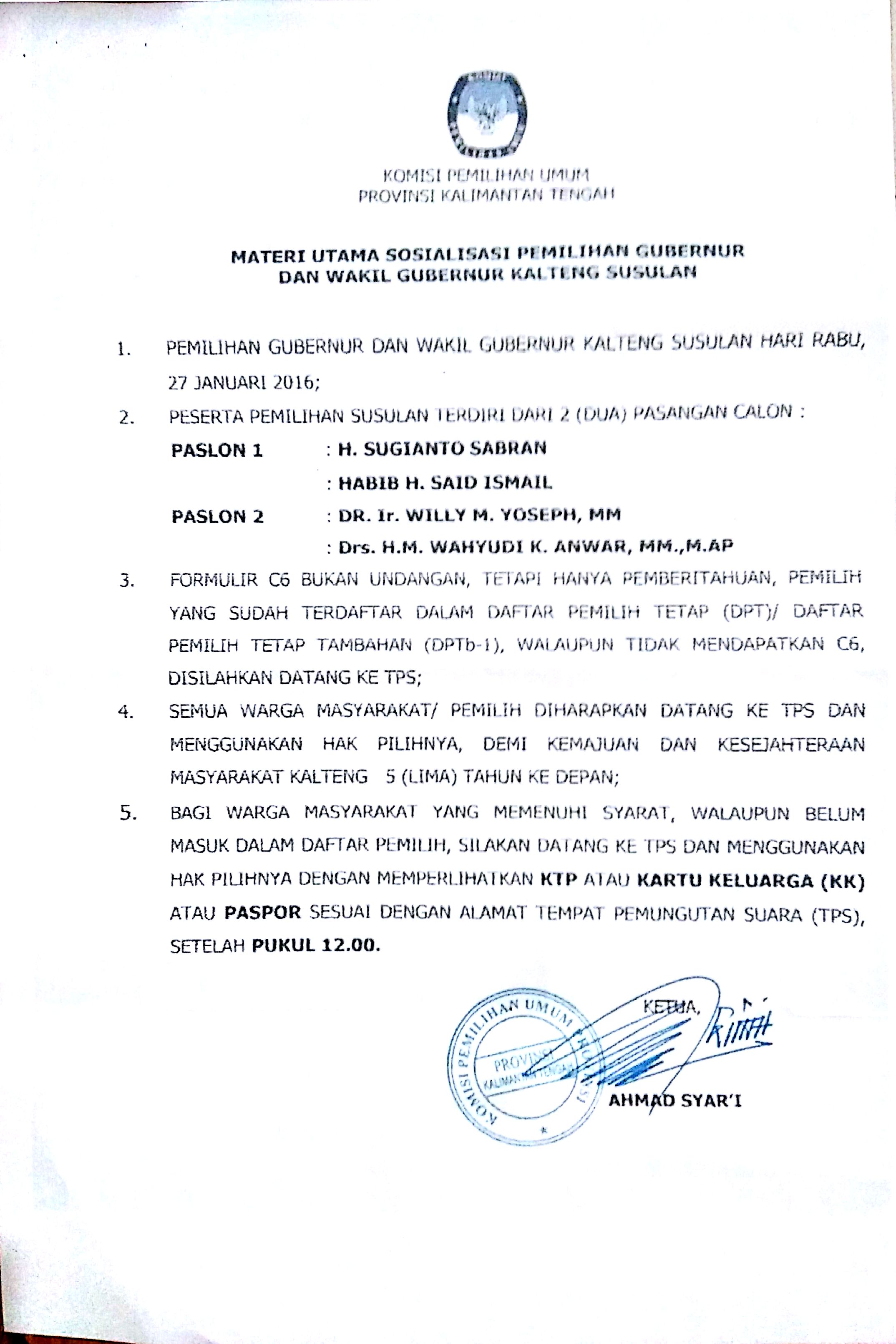 Sosialisasi PILGUB Kalteng 27 Januari 2016